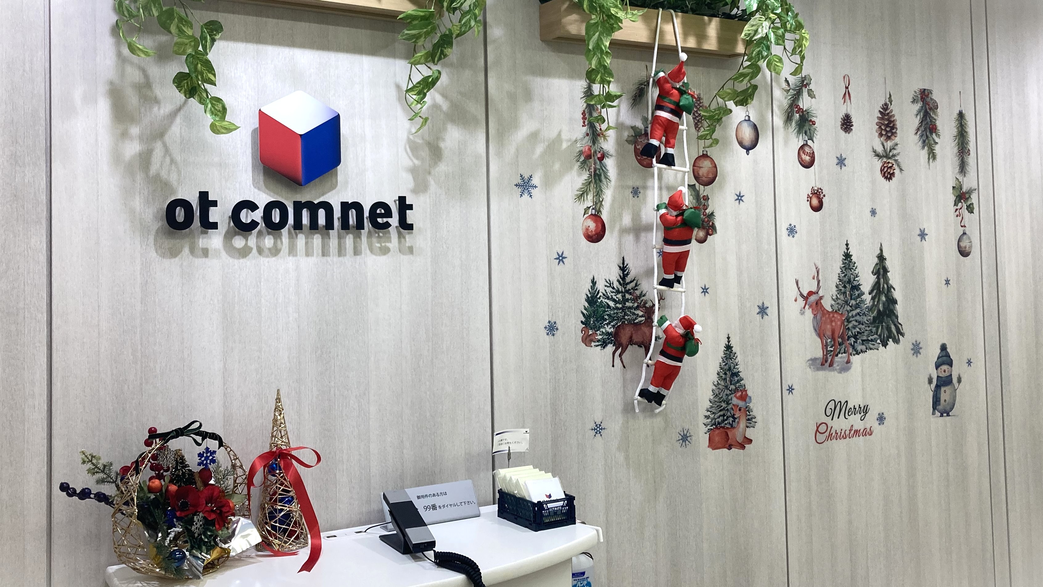 また、受付にもクリスマスの飾りつけを施し、ご来社いただく皆さまからも温かいお言葉をいただいております…!