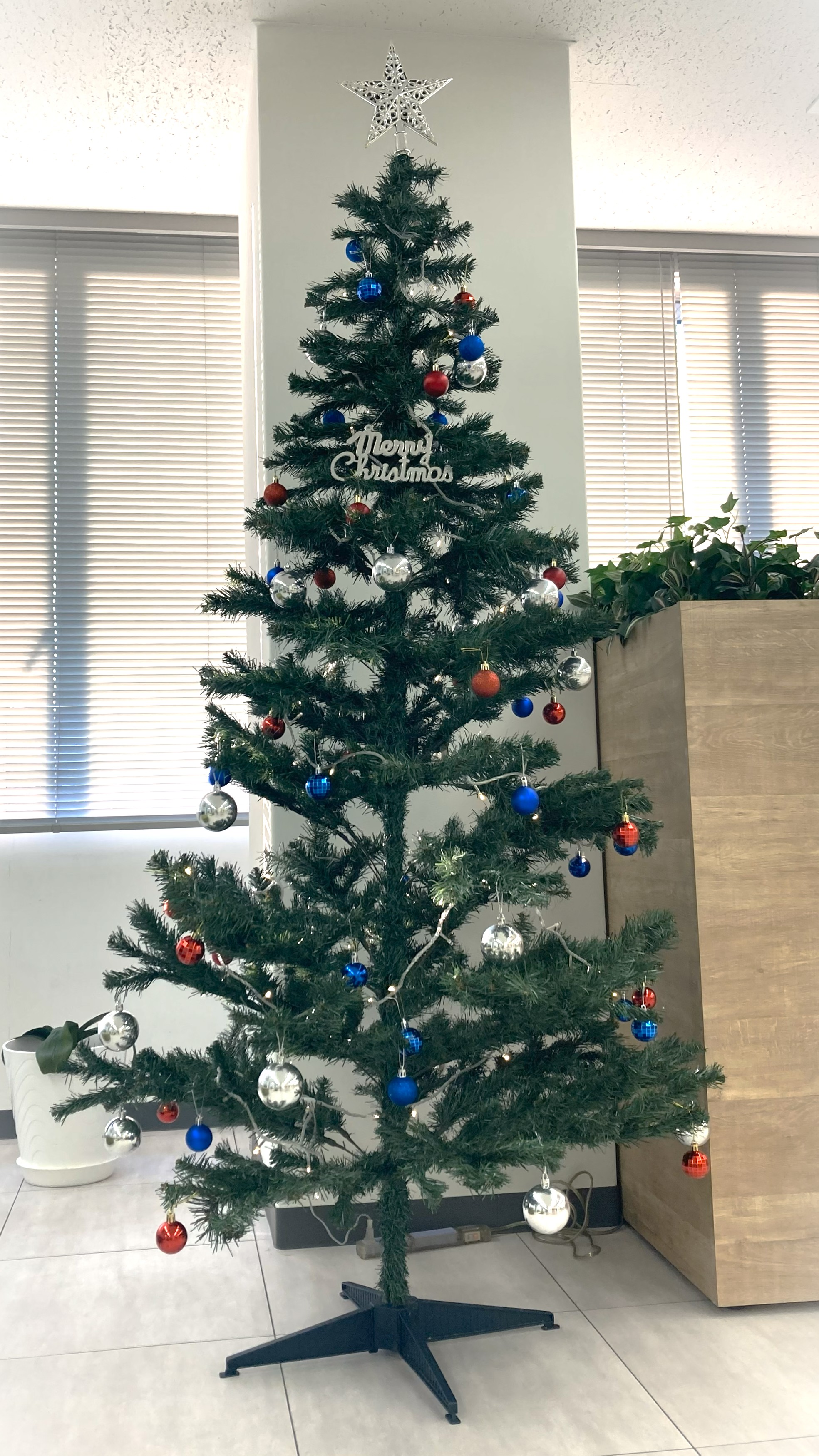 社員がお昼休憩をしたり、気軽なミーティングを行ったりするフリースペースには、大きなクリスマスツリーを設置しました🎄